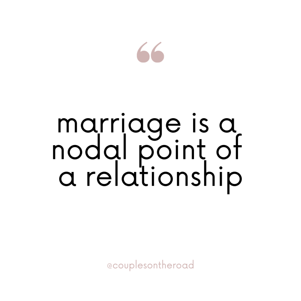 Marriage is a nodal point of a relationship, because while it might not directly change the way the two of you relate to each other, it often does change the way you relate to your two families. It also changes the way they relate to each of you. There might be new expectations within the family now that you have a new title. You might have a different way of thinking about those relationships as well. And because of these changes, it ultimately does change your relationship.