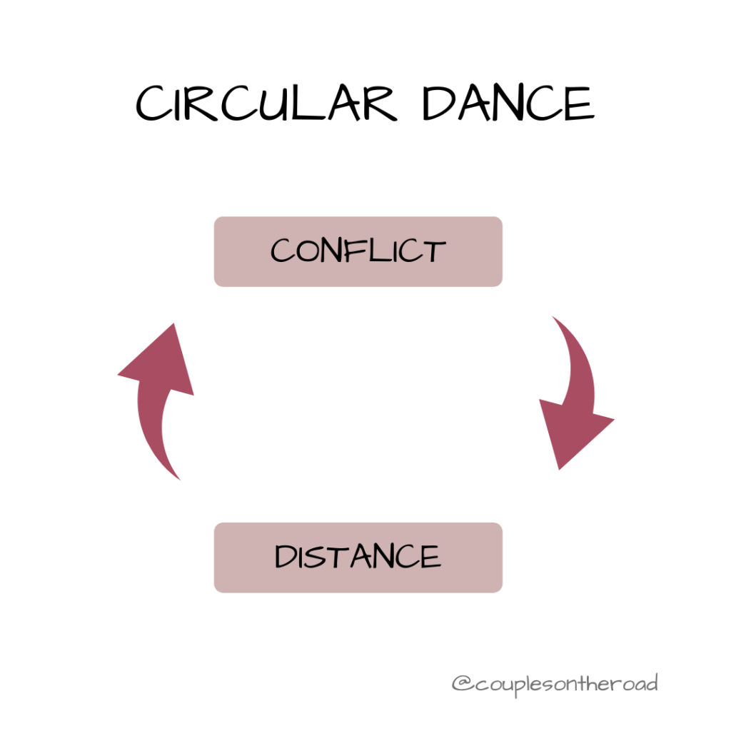 The dynamics between a couple can often look like a dance, where their interactions follow a pattern that can become ingrained and repetitive. The first common one is the circular dance of conflict and distance.